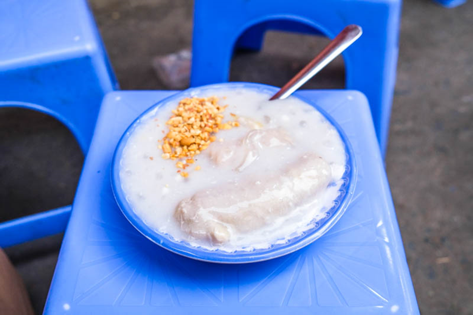 A popular delicacy is the soft steamed banana, which is made with coconut milk, tapioca pearls, crushed peanuts, and fresh bananas from the market every morning. It’s simple to understand why this is a fan favorite—the flavors are expertly balanced and the textures.