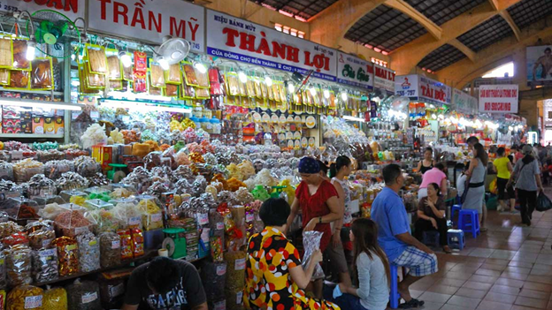 Binh Tay Market located in District 6, has a rectangular surface, 12 gates (both main and secondary), and is designed in Asian architecture. You can imagine a tangle of little lanes, packed booths, and frantic bustle. It was constructed in the late 19th century by the Cantonese population. The vivid colors of the fruits and vegetables, the enticing smells of the spices and herbs, and the sound of the bartering and haggling of the merchants all combine to create a sensory extravaganza. Vietnamese street food staples and local specialties can be found in abundance at Binh Tay Market, catering to foodies. Additionally, it is a veritable gold mine of handcrafted items and traditional crafts, such as pottery created by hand, fabrics with elaborate embroidery, and one-of-a-kind trinkets. Within the city, Binh Tay is one of the most ancient and renowned marketplaces, and attracts numerous locals and tourists. Thus, you must visit here to experience the culture and taste the best dishes at affordable prices.