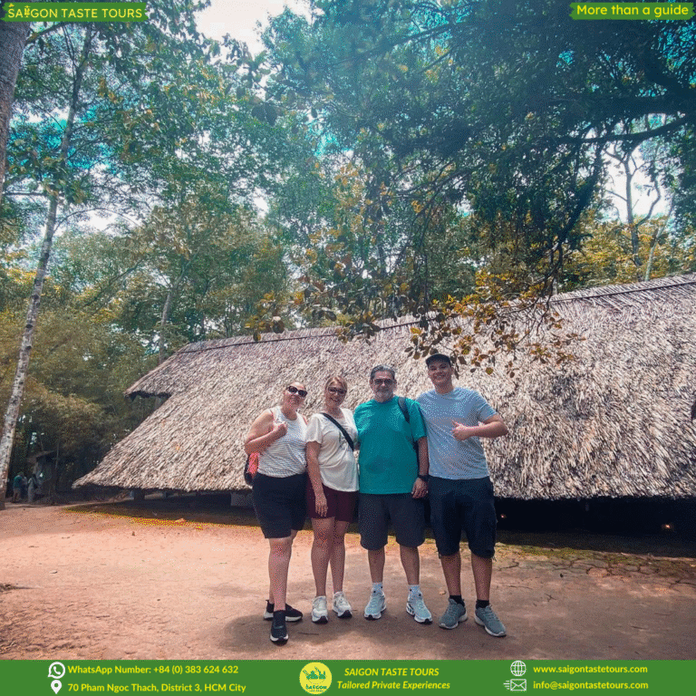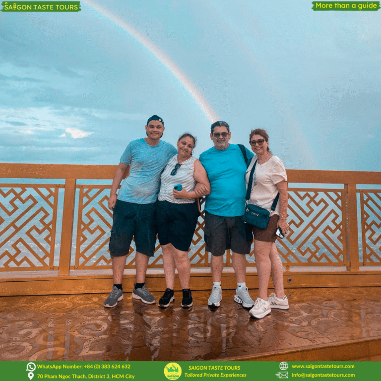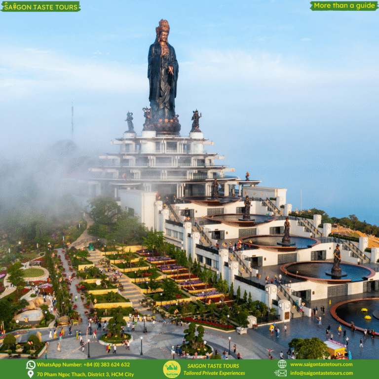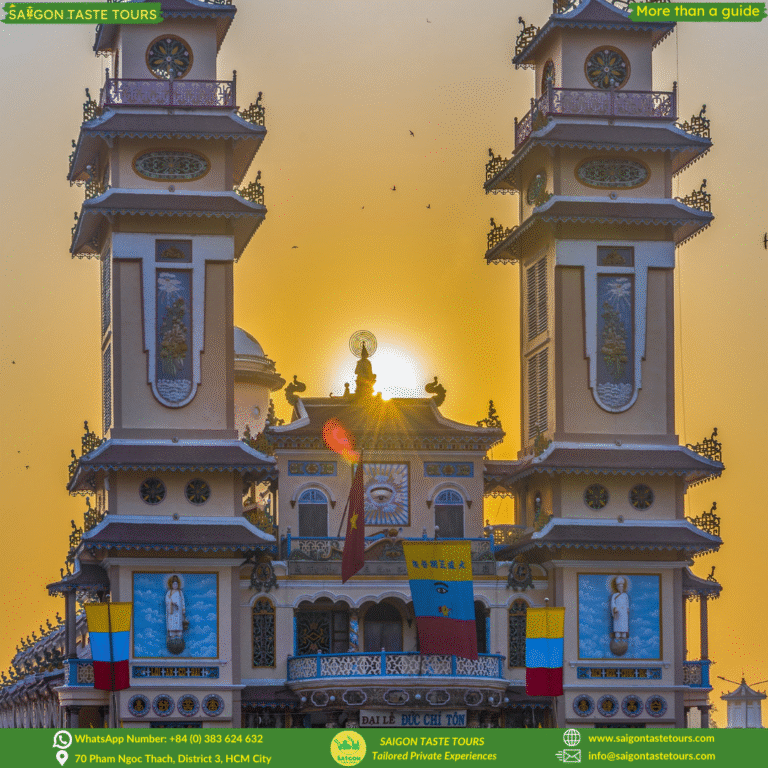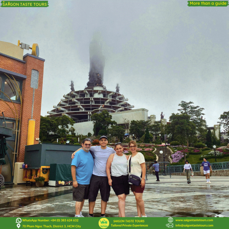 Refresh your soul with this full-day journey to Black Virgin Mountain, Cao Dai Temple, and the Cu Chi Tunnels. This unique combination tour blends spiritual discovery, natural beauty, and wartime history. Visit Asia’s tallest bronze Buddha statue, perched atop the sacred Black Virgin Mountain—recognized by the Asian Record Organization. Experience the solemn beauty of Cao Dai Temple, where you can join the colorful and spiritual Holy Mass, a truly unforgettable moment. Dive into Vietnam’s wartime past at the Cu Chi Tunnels, a vast underground network stretching over 250 km. At Saigon Taste Tours, we go beyond ordinary sightseeing. We provide personalized experiences designed around comfort, safety, and authenticity. Our local experts are more than guides, they’re like friends, sharing hidden gems, local flavors, and true stories of Vietnam.