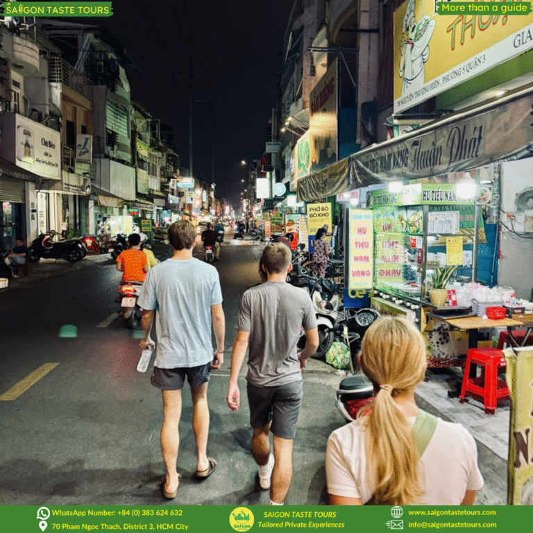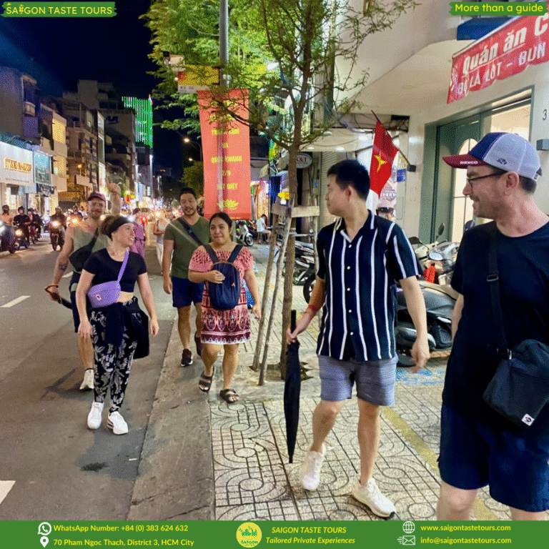 If there’s one thing you must experience in Ho Chi Minh City, it’s the vibrant street food culture. Stroll through the bustling streets with a friendly local guide and taste six authentic southern Vietnamese dishes at hidden spots loved by locals, including places featured by Anthony Bourdain! You’ll enjoy not only the food but also the buzzing night street markets, fascinating old apartment buildings, and the city’s largest flower market, all while soaking up the energy of Saigon after dark. At Saigon Taste Tours, we go beyond ordinary sightseeing. We provide personalized experiences designed around comfort, safety, and authenticity. Our local experts are more than guides, they’re like friends, sharing hidden gems, local flavors, and true stories of Vietnam.